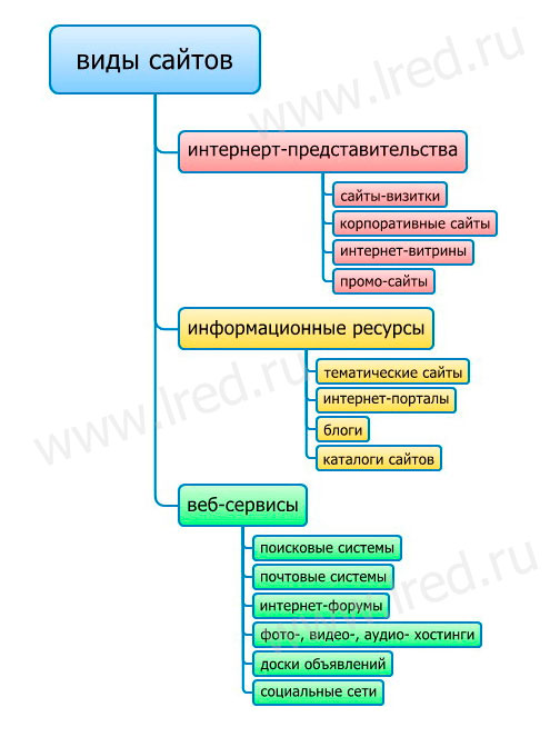 Для удобства ориентации в сфере сайтостроительства, веб сайты делятса на: - сайт визитка, - корпоративный сайт, - промо-сайт, - Интернет-магазин, - Интернет портал, - имиджевые сайты и пр ... Такое |