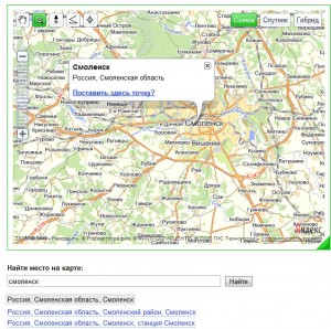 Нужные нам инструменты находятся на странице API.Yandex.ru/maps/tools/ – здесь есть Конструктор схем проезда и Определение координат нашей точки на карте. С вторым сервисом всё понятно (он просто нам укажет широту и долготу), мы будет работать именно с API.Yandex.ru/maps/tools/constructor/. Внизу прописываем нашу местность – я буду работать со Смоленском и нам Яндекс.Карты предлагают сразу несколько важных точек: вокзал, центр города, аэропорт и так далее. Где-нибудь в Москве число этих пунктом может быть значительно выше. Тут же можно растянуть карту, определив высоту и ширину окна.