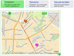 Можно сменить вид: Схем, Спутник, Гибрид – поэкспериментируйте. Рисунок готов. Для того, что бы посмотреть как это будет выглядеть карта на самом сайте, переходим на ШАГ2, тут же можно выбрать формат: либо для сайта, либо для блога. Во втором случае, Яндекс.Карта будет отображаться в том числе и в RSS ленте. Удобно.
