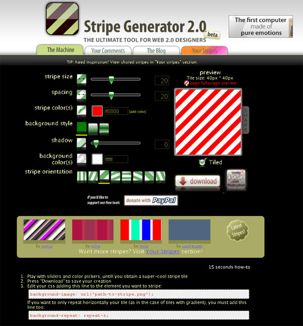 Онлайн сервис для быстрой генерации изображения с полосками, которое можно использовать в качестве фона в своих проектах |