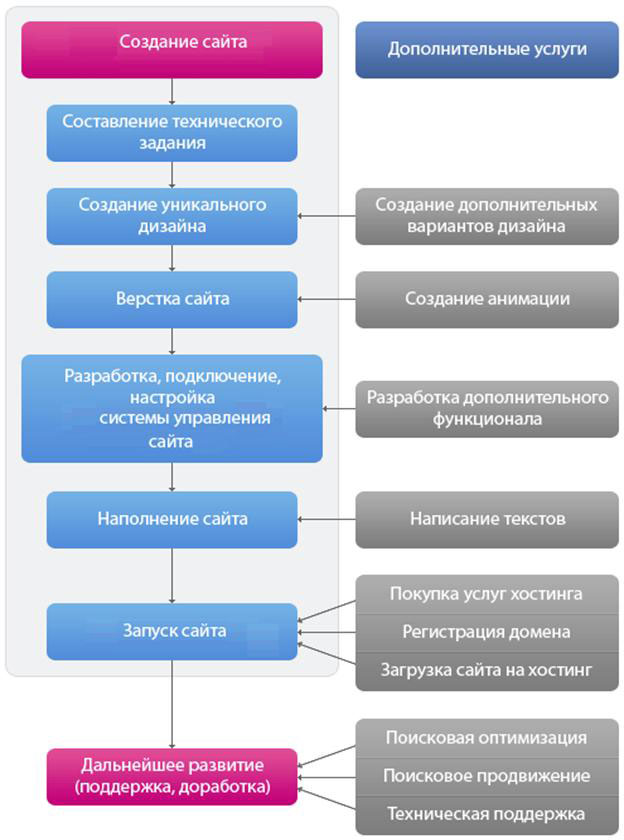 Перед тем как сайт попадает на просторы интернета, его создатель должен пройти достаточно длинный путь и выполнить ряд шагов, которые помогут получить действительно качественный и эффективный ресурс. Остановимся на основных 10 вехах, которые являются обязательными при создании сайтов. Они могут дополняться и другими действиями, но без этой десятки сделать интернет-продукт точно не получится. |