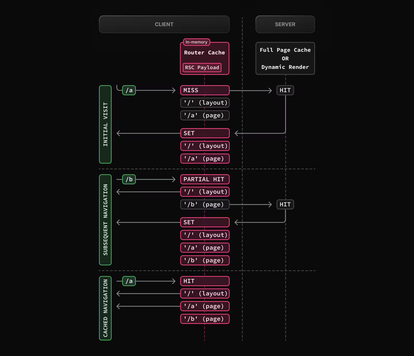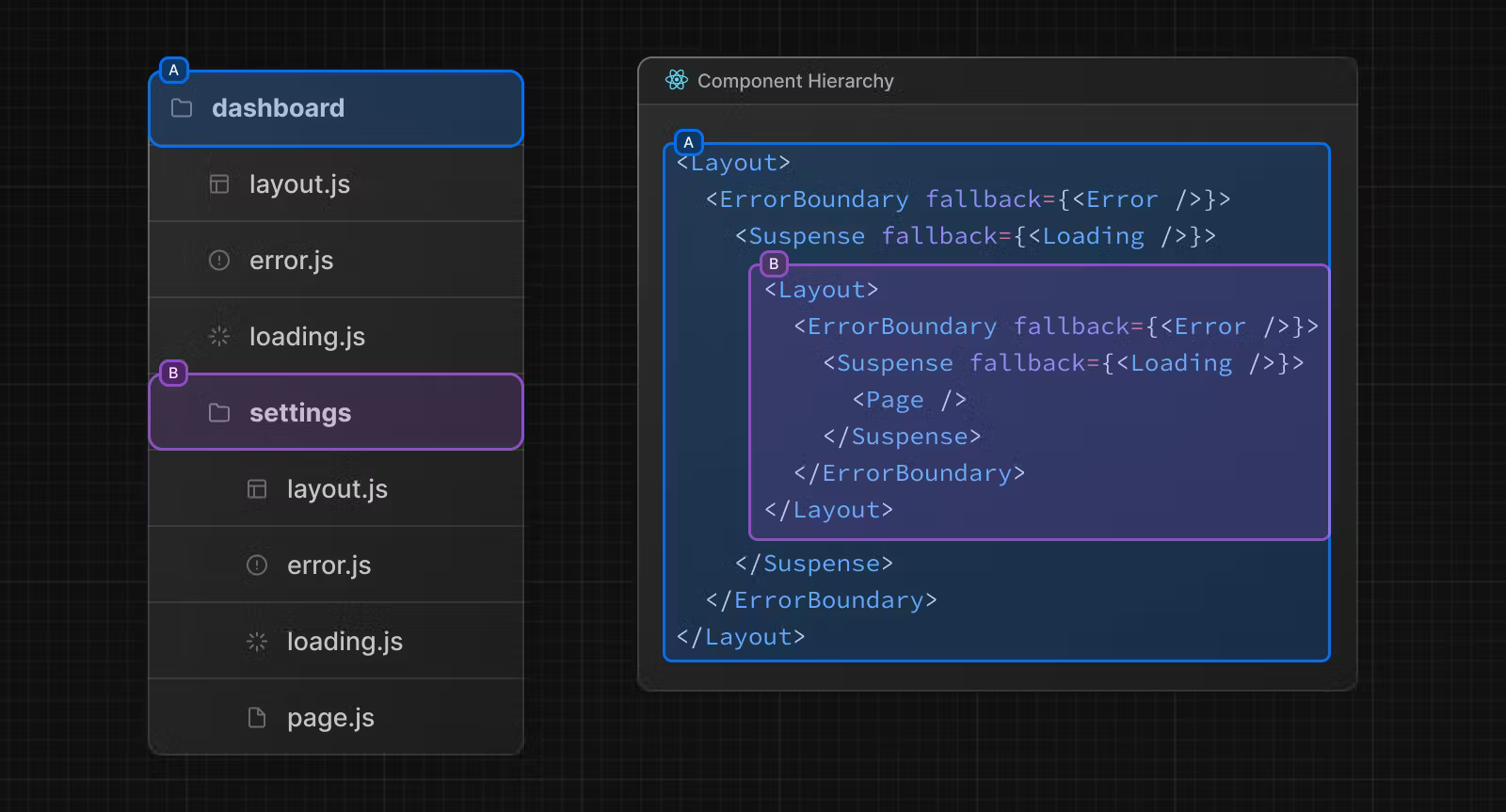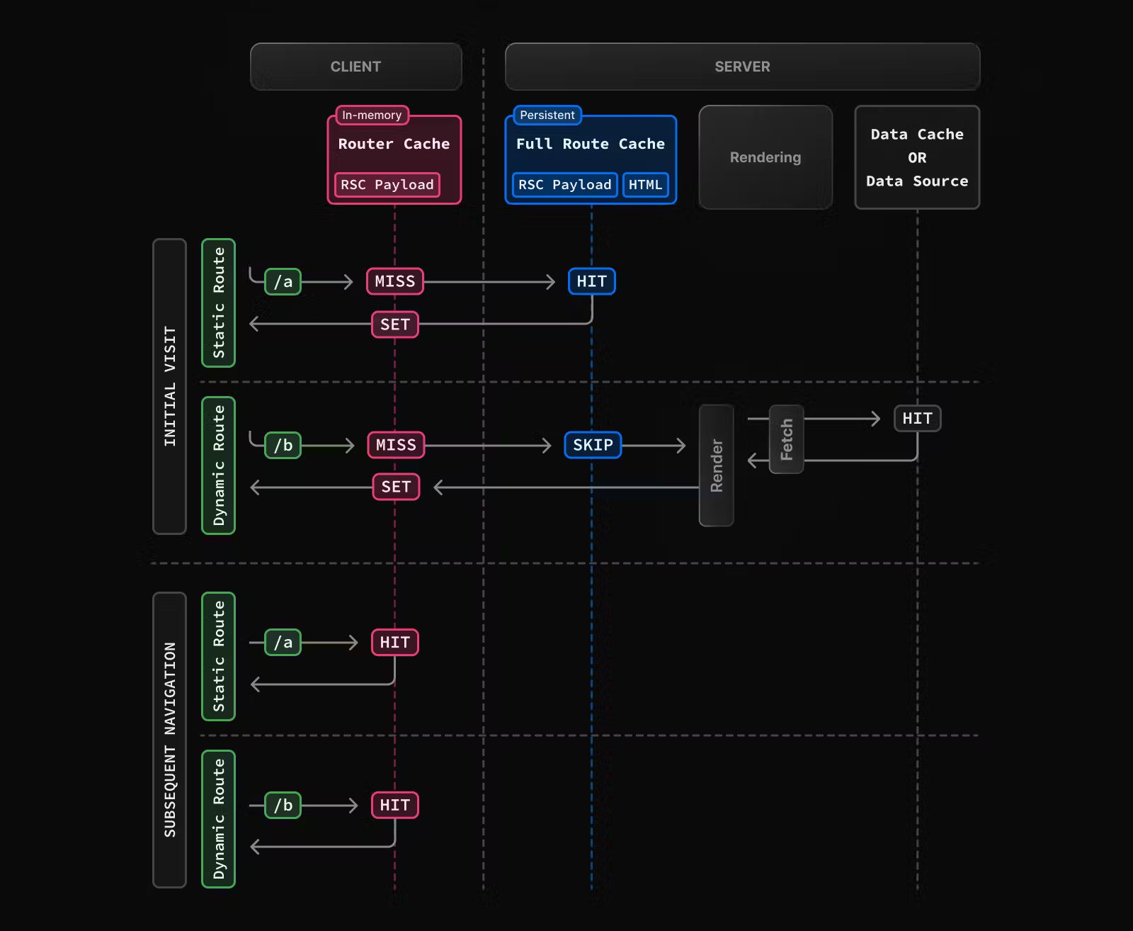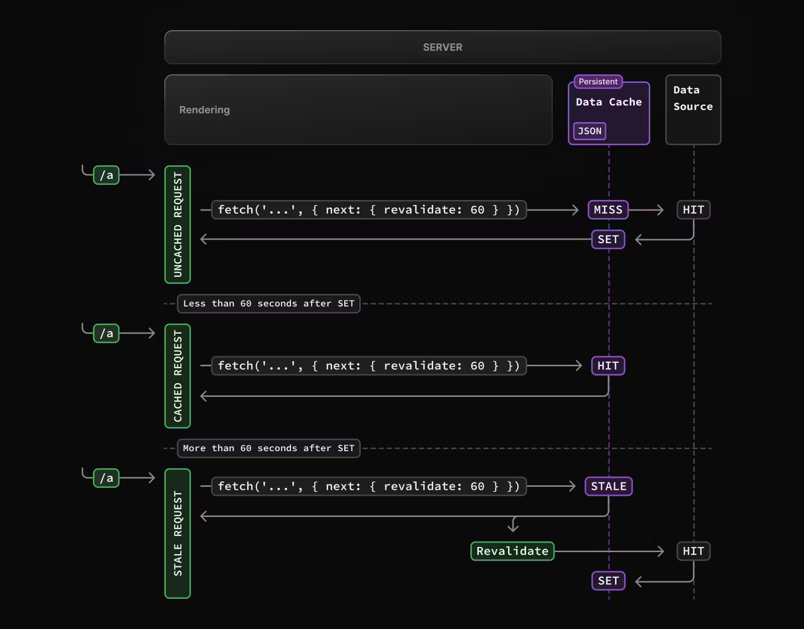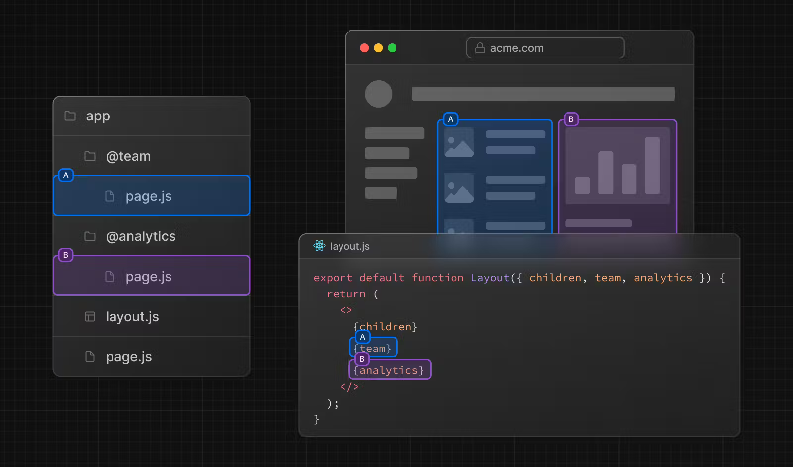 | Запрос/получение данных | Упрощенное получение данных с помощью async/await в серверных компонентах. Расширенный Fetch API для мемоизации запросов, кеширования и ревалидации данных