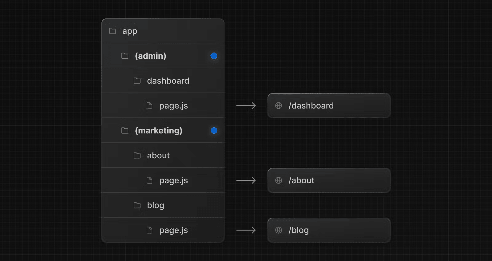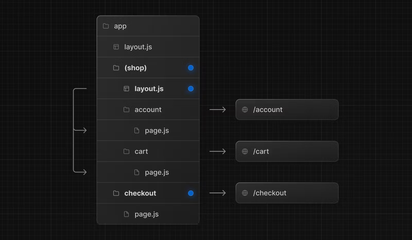 Группировка роутов без влияния на роутинг (вид URL (uniform resource locator - единообразный указатель местонахождения ресурса)) |