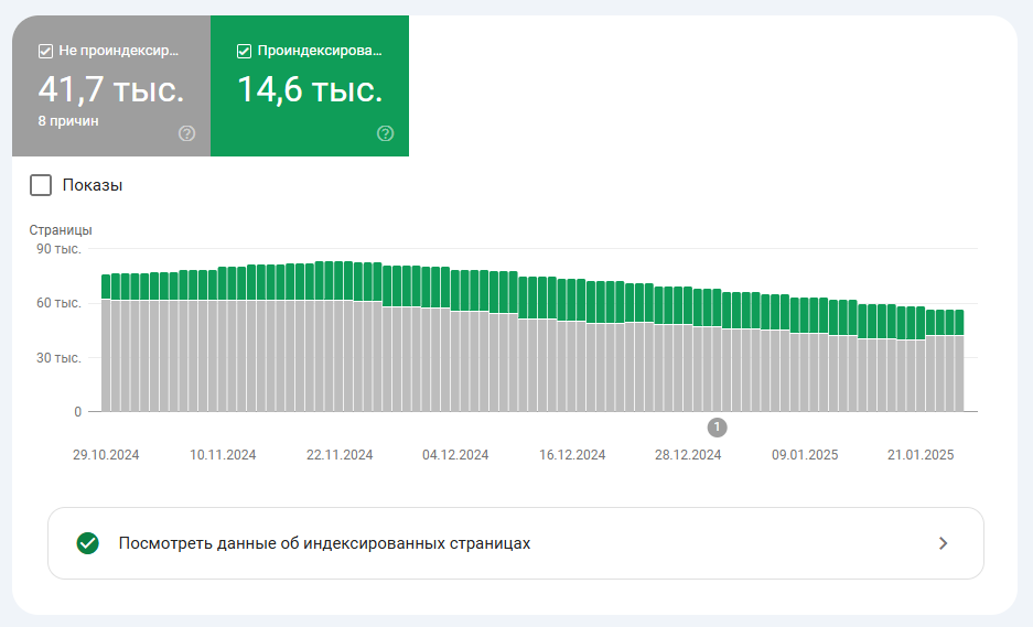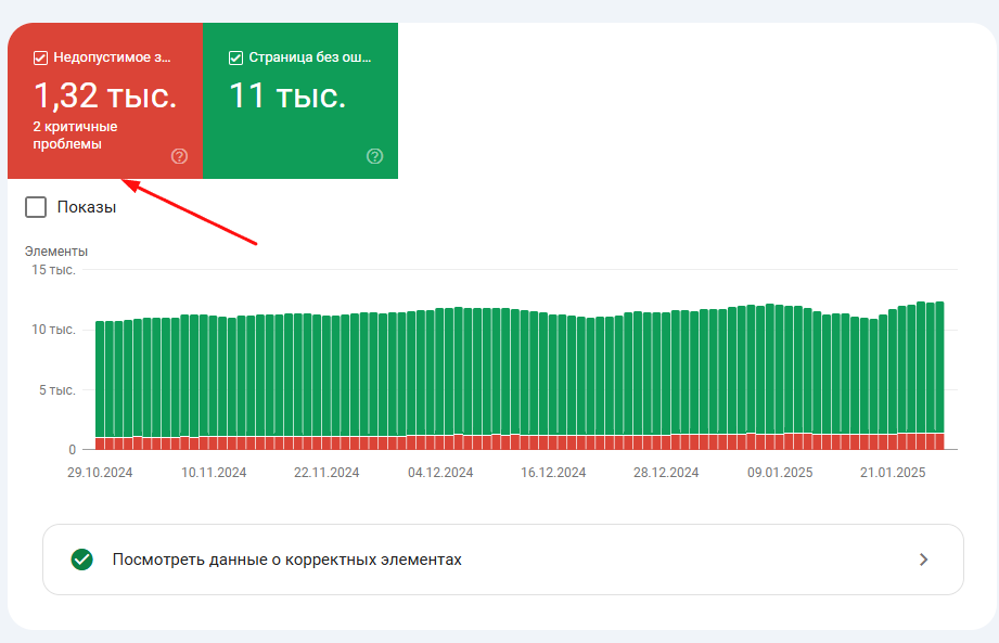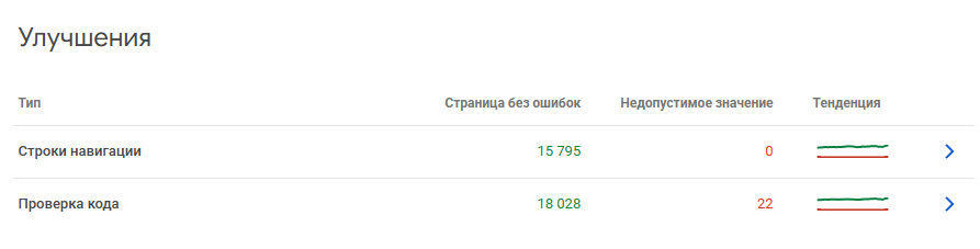 Улучшения. Сколько страниц сайта проиндексированы без ошибок, а сколько – с ошибками.