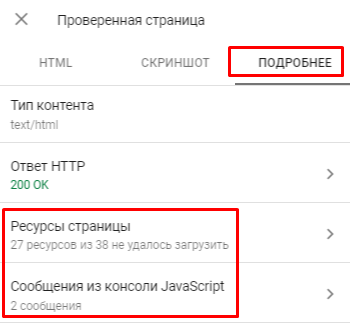 Причина в том, что при индексации не все ресурсы страницы удалось загрузить. Также обнаружены две ошибки кода JavaScript.