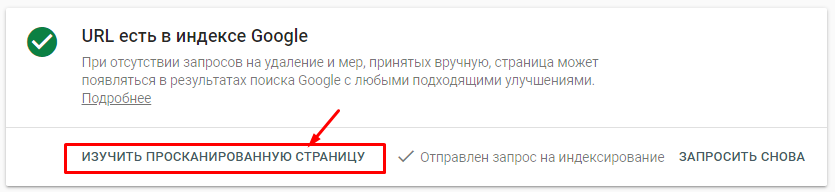 Устранить ошибки. В ходе проверки URL система может обнаружить ошибки. Для получения подробной информации нажимаем «Изучить просканированную страницу»: