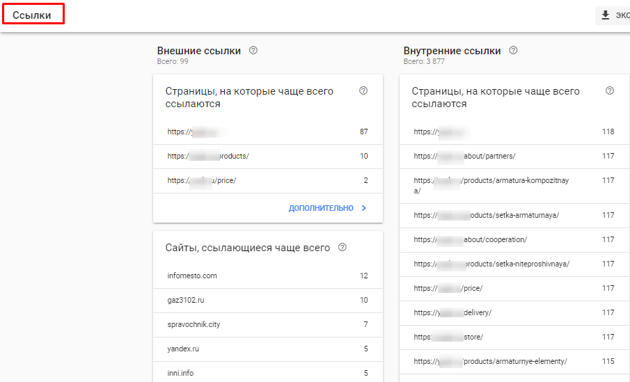 Отчет «Ссылки» объединяет в себе сразу четыре: