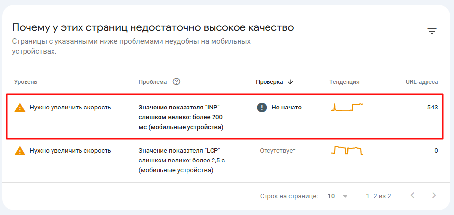 Определить эффективные и неэффективные страницы с точки зрения скорости загрузки.
