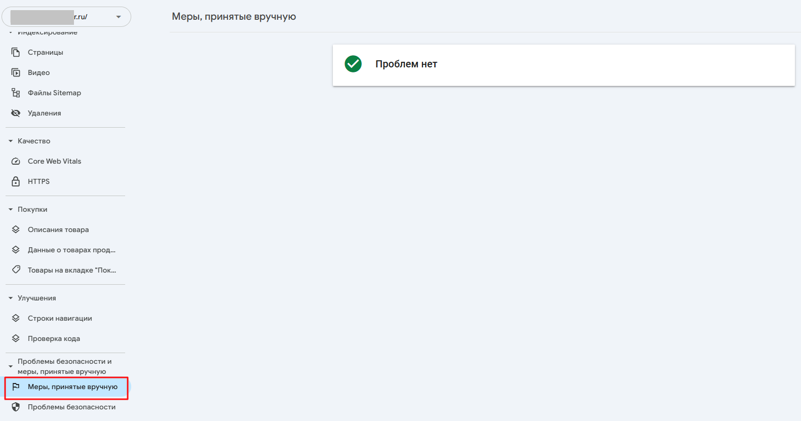 Из отчета мы видим, что проблем не обнаружено. Это означает, что Google не заблокировал по нашему сайту никаких результатов поиска.