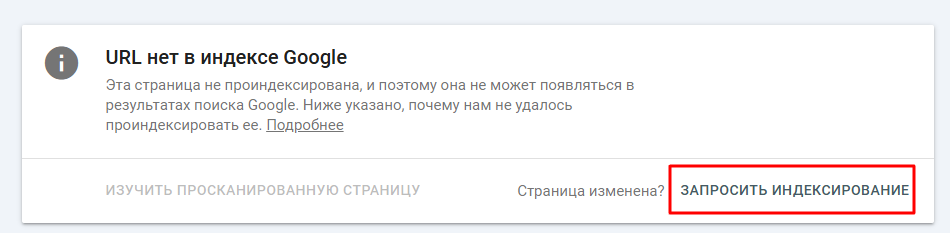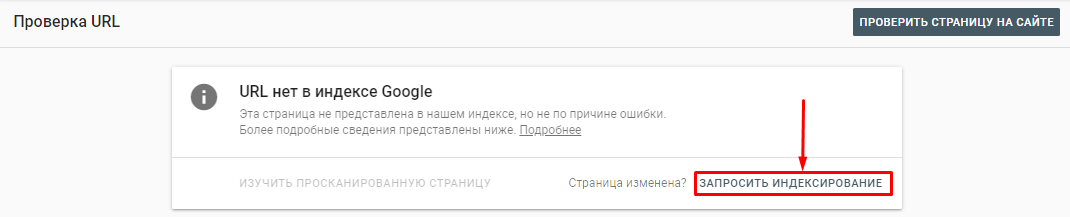 Ускорить индексацию новой страницы. Если проверка показала, что URL не проиндексирован, то можно ускорить процесс индексации. Для этого необходимо запросить индексирование.