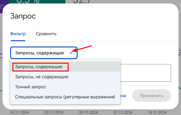 Выбираем фильтр «Запросы, содержащие». Ниже пишем слово «вайлдберриз» и применяем изменения: