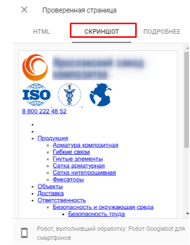 Здесь можно посмотреть HTML-код страницы (вкладка «HTML»). Перейдем на вкладку «Скриншот», чтобы посмотреть, как видит страницу Google.